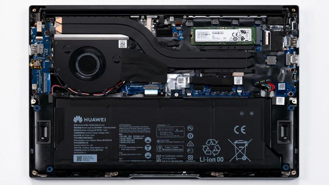 上图是荣耀 MagicBook14 2021款的拆机实拍图,双热管单风扇的组合,与上一代产品基本一致。