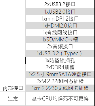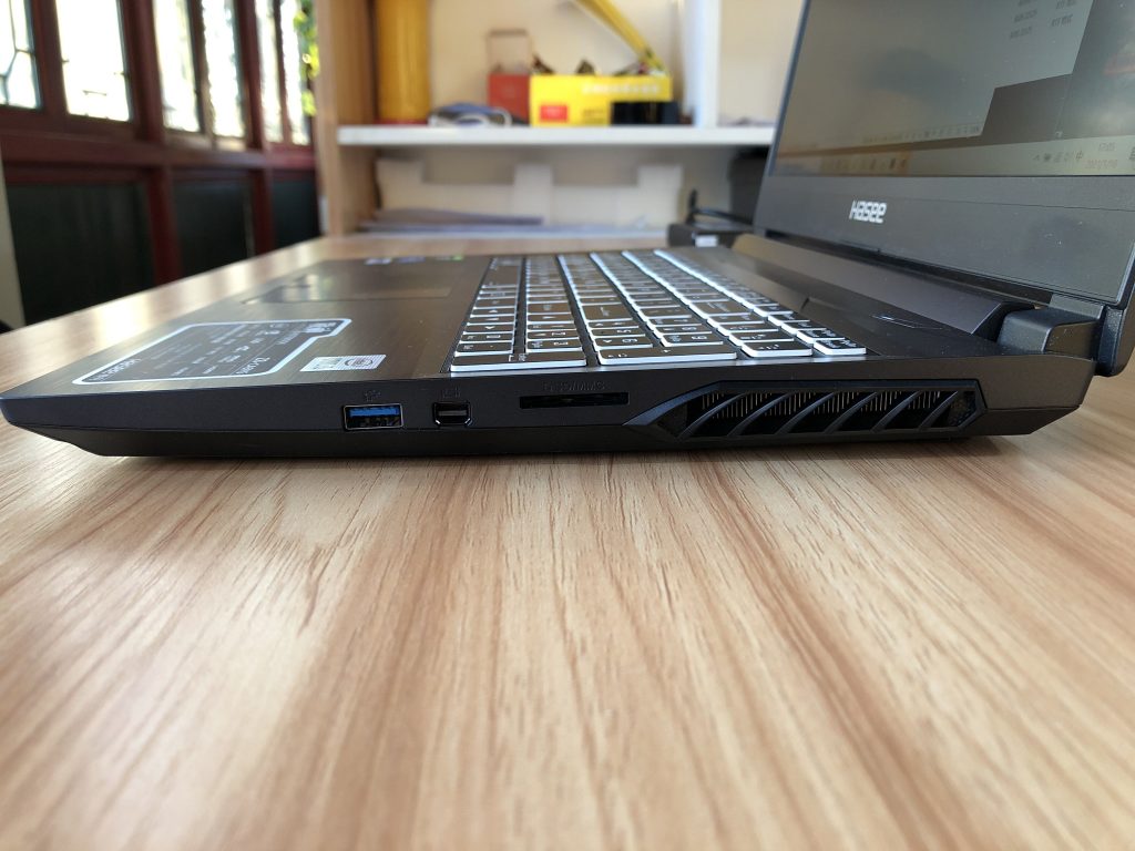 右侧接口有一个USB 3.2、一个Mini DP接口(纯独显输出)、一个标准SD卡槽;