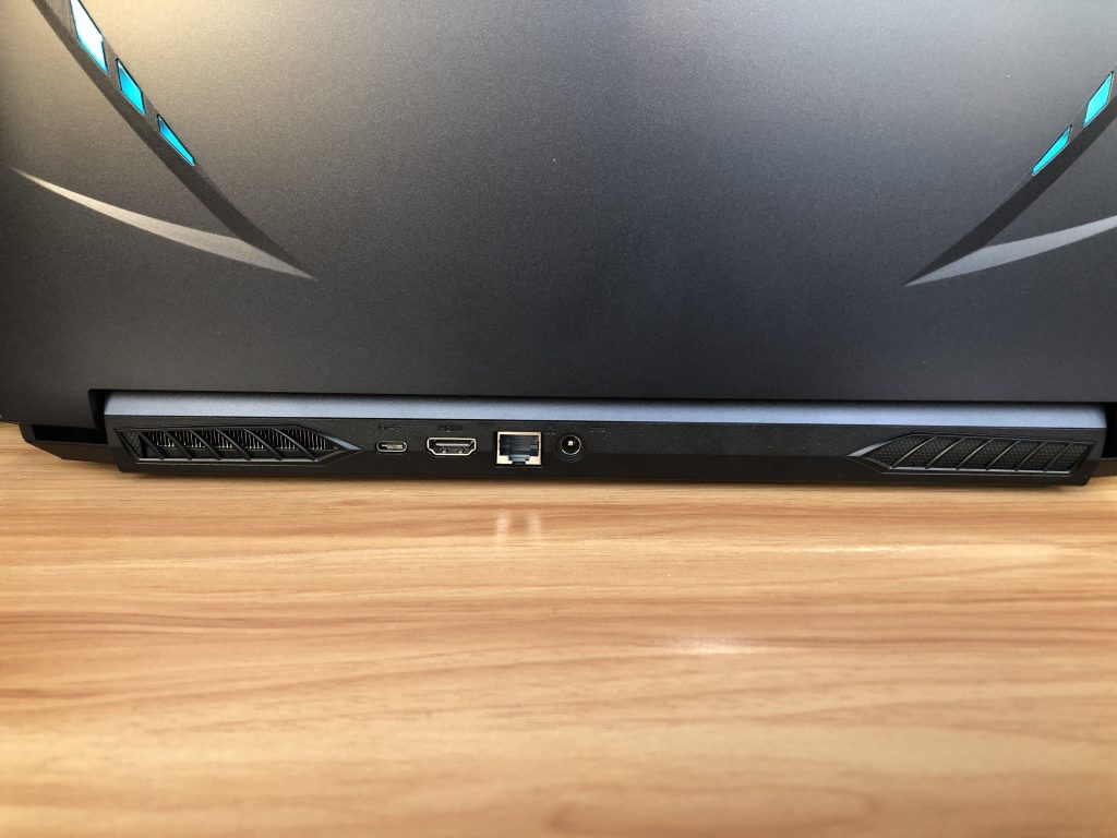 后部有一个USB3.2 Type-C接口、一个HDMI接口、一个RJ-45网口、电源插孔;