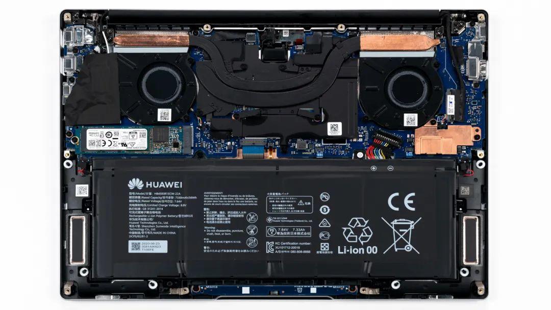 上图是华为Matebook 14 2021的拆机实拍图,双风扇双热管的组合。