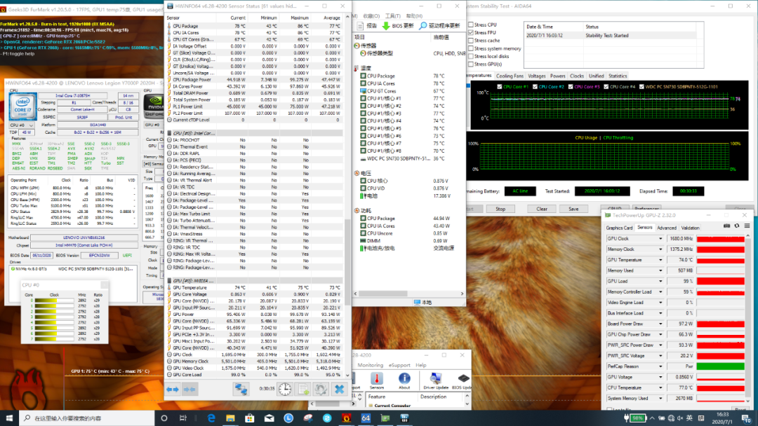 总的来说,Y7000P 2020的核心散热表现不错,但键盘中间区域温度较高,可见联想的散热也并不是全方位无敌,高性能必然伴随着高发热。