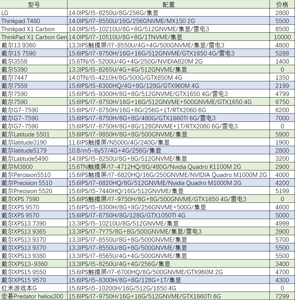 上周已售出机型:(无法列出成色,价格仅供参考)