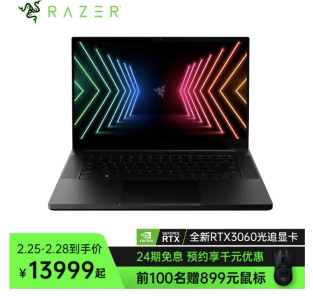 雷蛇新款灵刃 15 游戏本上架:i7+RTX 3060,首发 13999 元
