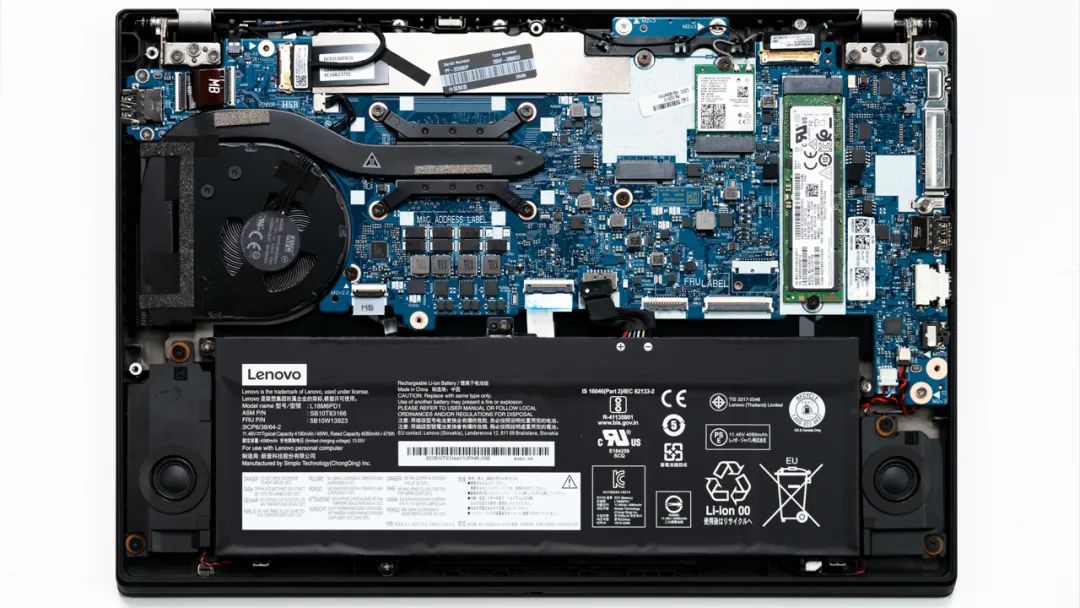 上图是ThinkPad X13 锐龙版的拆机实拍图,单热管单风扇的组合。