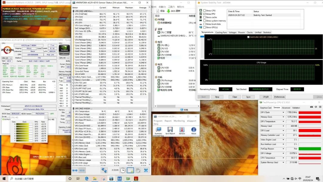 总的来说,R7000P的散热表现不错。R7000P的调校做得非常激进,这台电脑是目前为数不多的,使用115W功耗的RTX2060游戏本。
