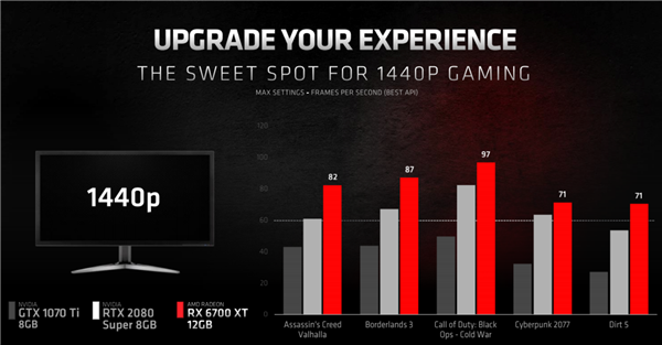 性能方面,AMD官方在发布时也公布了对比图,参与性能对比的是老对手的RTX 2080 Super 8GB、RTX 3070 8GB和RTX 3060 Ti 8GB。