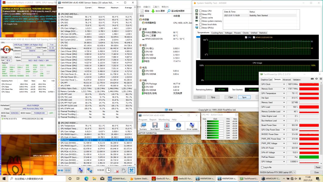 整体性能释放与同样90W的RTX3070版本相差无几。