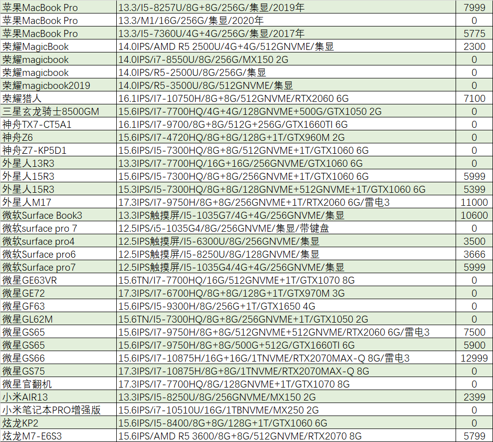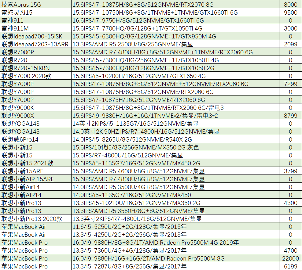 本周待售机型:(无法列出成色,价格仅供参考,0元表示卖家未定价)