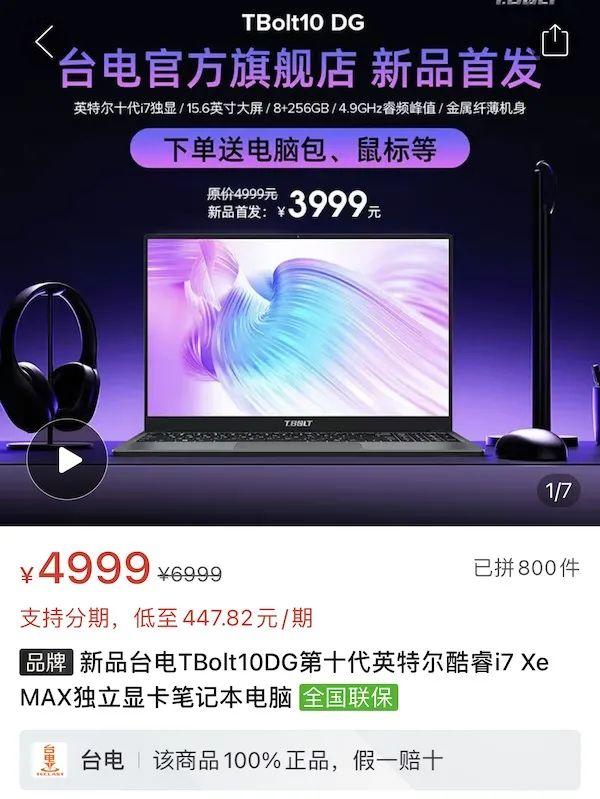 台电预热多时的 T.BOLT 10 DG 笔记本现已上架拼多多,主打英特尔独显 Xe Max,首发售价 3999 元。
