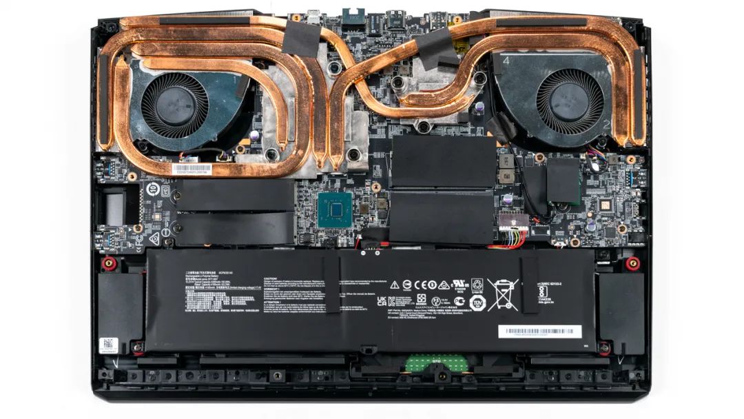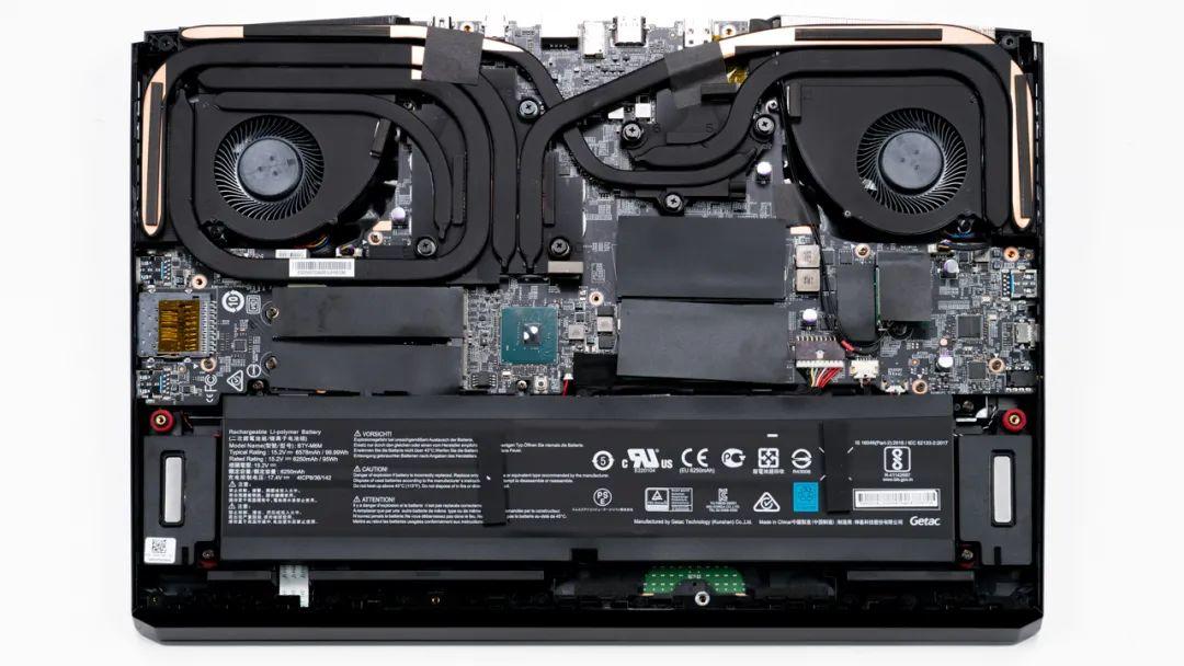 上图是微星 GP76的拆机实拍图,6热管双风扇的组合。散热模组和GE76基本一致,但未进行黑化处理。