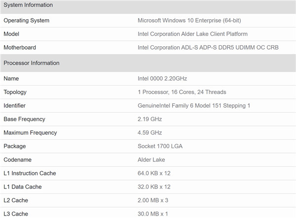 同时值得一提的是,这次DG2所采用的平台并不是当下主流产品,而是尚未“露头”的Intel第12代酷睿处理器Alder Lake,该处理器拥有16c24t,L2缓存6MB,L3缓存30MB,最高频率4.6GHz,也就是传闻中8大核、8小核的顶级款。