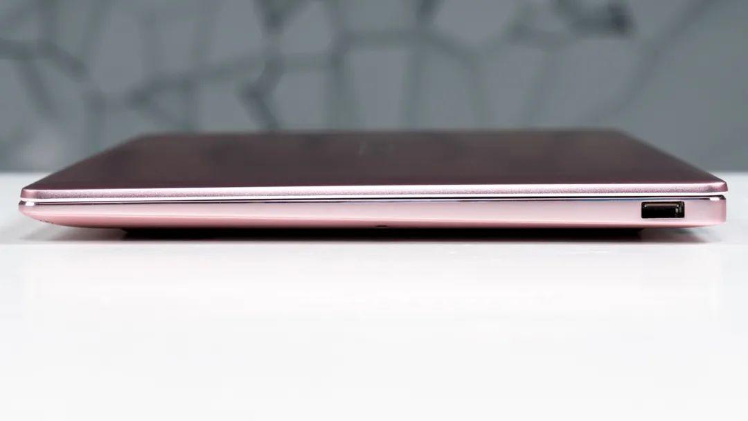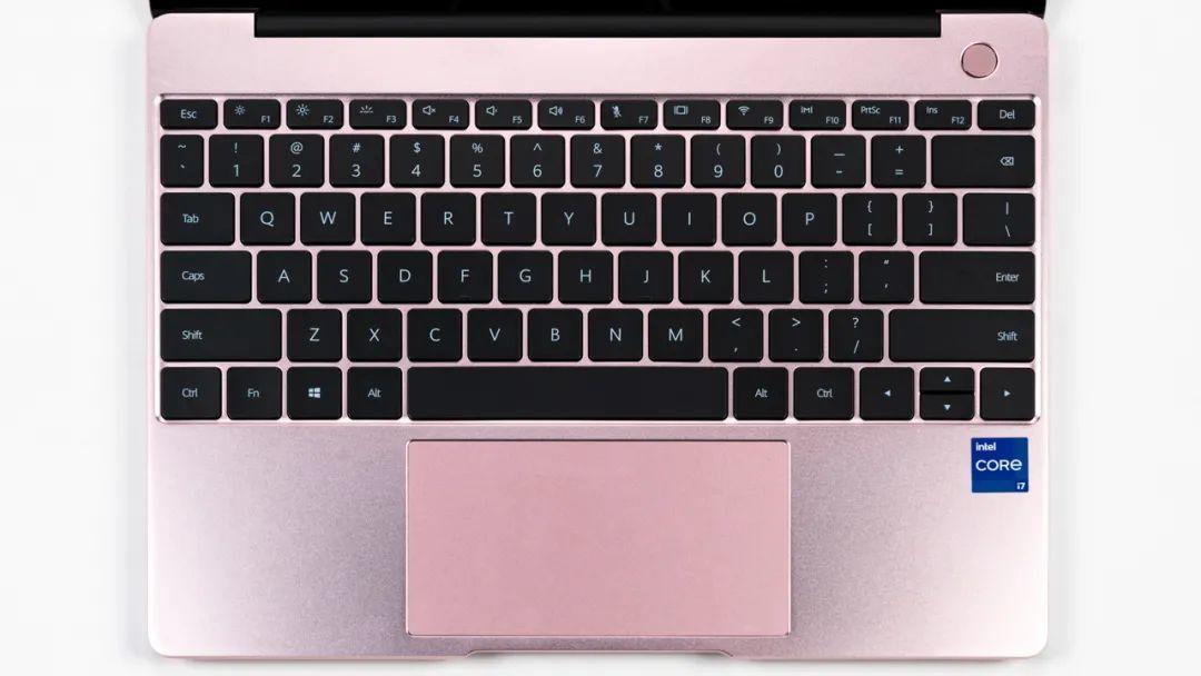 这台MateBook13最大的特点是配色,粉色机身的色彩深度、着色工艺都很困难,所以同价位里几乎见不到粉色的笔记本电脑。