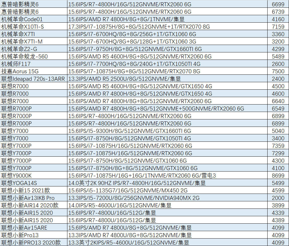 配置:15.6英寸72%NTSC 144HZ IPS/R7-4800H/16G/512GNVME/RTX2060 /背光键盘