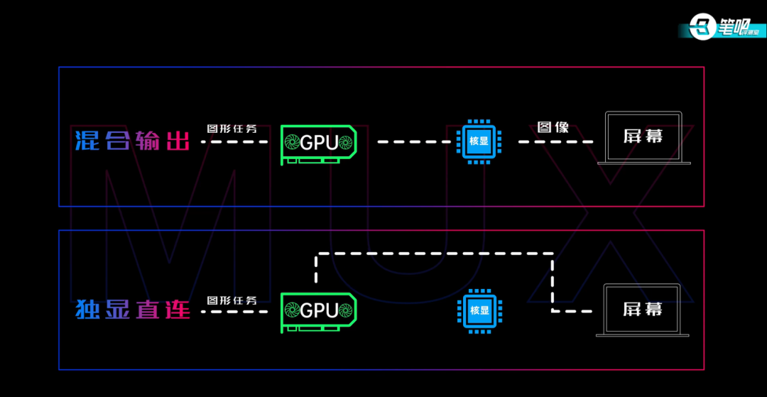 这年头游戏本产业竞争激烈,“散热强”、“性能猛”只是及格,顶级产品都已经开始抠细节了,今后游戏本有一个重要细节必须得抠,那就是“MUX显卡切换技术”:
