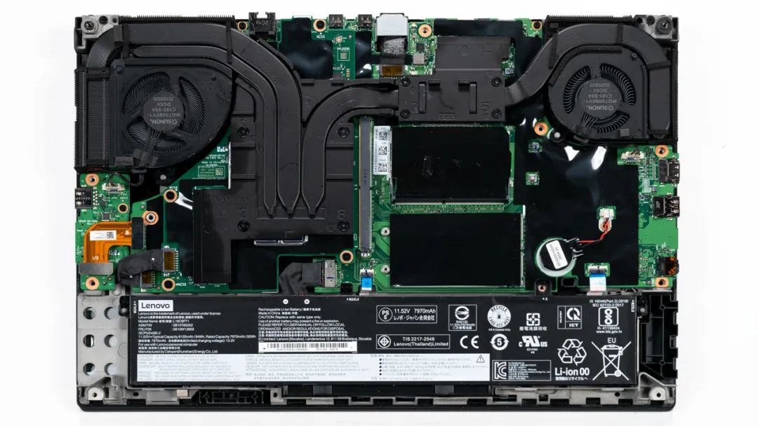 上图是ThinkPad T15g的拆机实拍图,三热管双风扇的组合,热管为两粗一细,其中CPU为热管直触,这种散热方式比较少见。