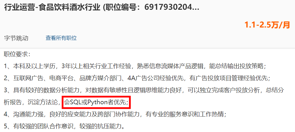 现在各大高薪热门的岗位JD上,Python都已经成为了重要的加分项。