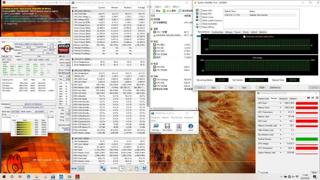 值得一提的是,R5 4600H在60W时已经能达到全核4.0GHz的最高频率。(烤机除外)