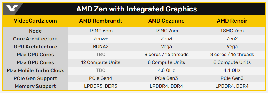 AMD“伦勃朗”移动处理器曝光:Zen3+ 架构 6nm 制程,核显最多 12CU