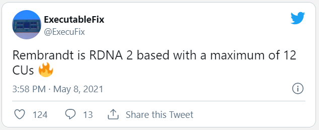 根据外媒 VideoCardz 消息,一名爆料者在推特公布了下一代锐龙 6000 系列移动处理器的信息,代号“伦勃朗”(Rembrandt )。这款处理器将搭载 RDNA 2 架构核显,最高具有 12 个计算单元,也就是 768 个流处理器,接近入门独显。外媒表示,这款处理器的型号预计为 Ryzen 9 6900H (S/X)。