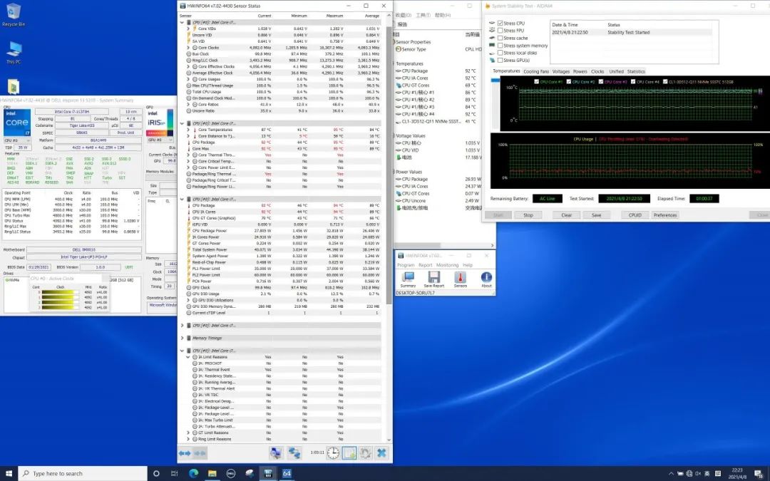在满载状态下,CPU温度最高92℃,功耗28W,频率维持在4.1GHz。