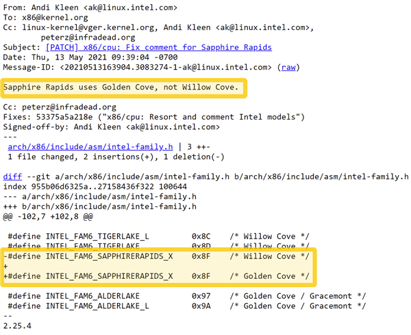 就在日前,Intel Linux工程师Andi Kleen提交了一个新的内核补丁,并确认,Sapphire Rapids 将采用未来12代酷睿上使用的Gold Cove架构。