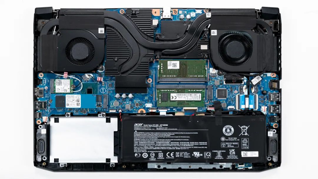 上图是宏碁 暗影骑士·擎的拆机实拍图,3热管双风扇的组合,与之前的暗影骑士·龙几乎一样,相比老款有一根热管加粗。