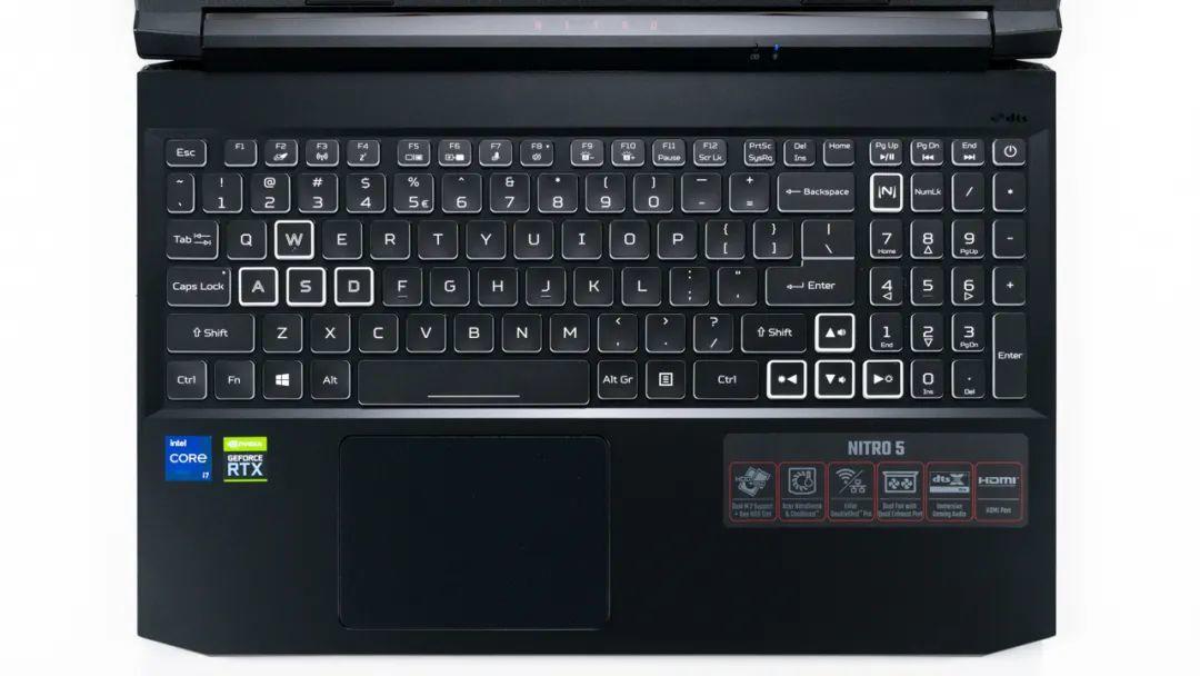 身为H45的首发厂商之一,宏碁第一时间更新了暗影骑士·擎系列,同样采用了i7+3060,也同样标配了四分区RGB背光键盘+三个硬盘位。