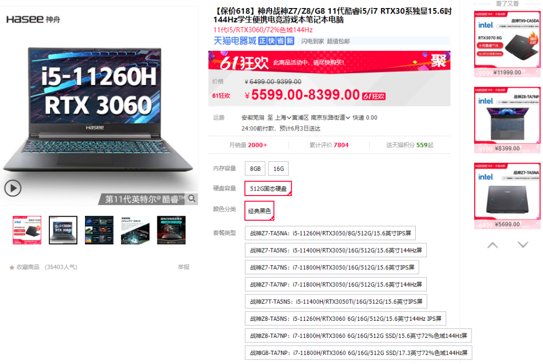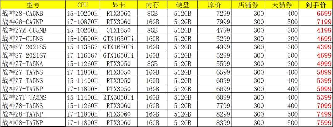如果对Z7-TA5NA到G8-TA7NP那一栏感兴趣,可以复制一下淘宝口令跳转至商品页: