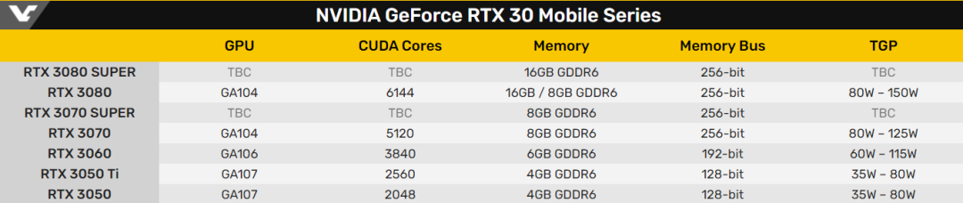 RTX 3080 Super 拥有 16GB GDDR6 显存,RTX 3070 Super 拥有 8GB GDDR6 显存,二者可能都将搭载 GA104 GPU。
