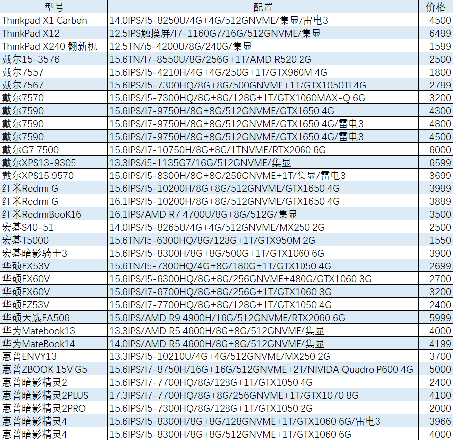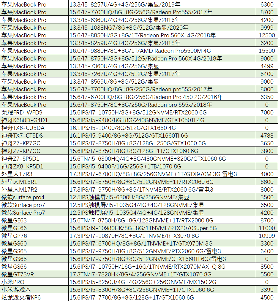 上周已售出机型:(无法列出成色,价格仅供参考)