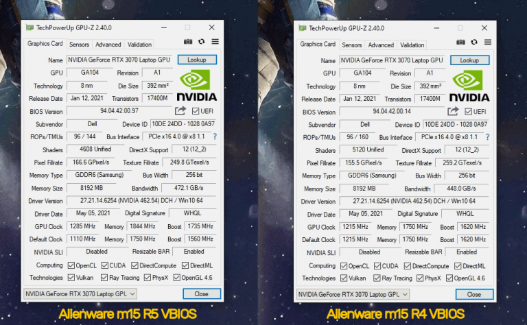 我们已经发现了外星人 m15 R5 游戏本的 vBIOS 限制了 RTX 3070 显卡的 CUDA 核心,将尽快纠正这一错误,预计会在 6 月中旬之前提供解决方案。在此之前,我们不建议刷入其他外星人笔记本的 vBIOS 进行修复。