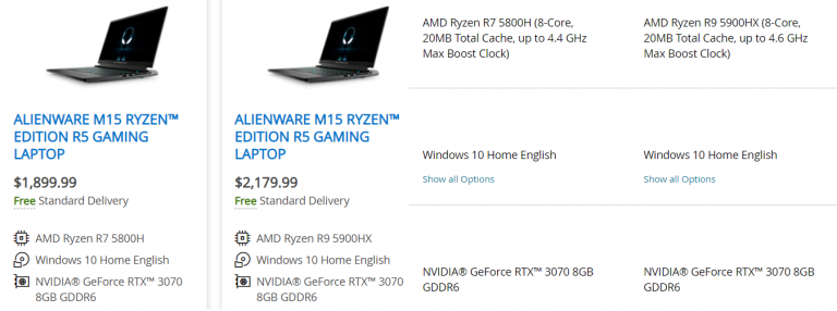 IT之家了解到,外星人 m15 R5 游戏本搭载了锐龙 5000 系处理器,以及 RTX 3070 显卡。而 R4 和 R6 游戏本都是采用了英特尔酷睿处理器,并没有被限制 CUDA 核心。