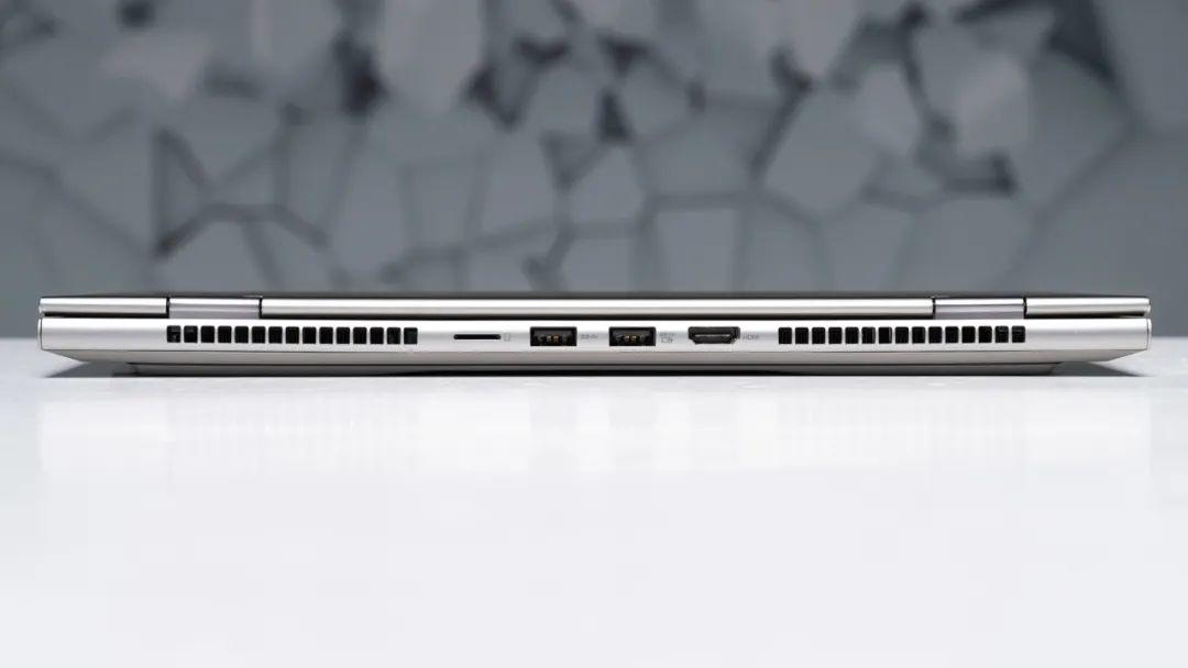 接口方面,它有两个全功能USB-C接口(3.1速率),两个USB-A 3.1接口、HDMI2.0、TF卡槽,以及一个3.5mm音频接口,在同尺寸中接口较多。