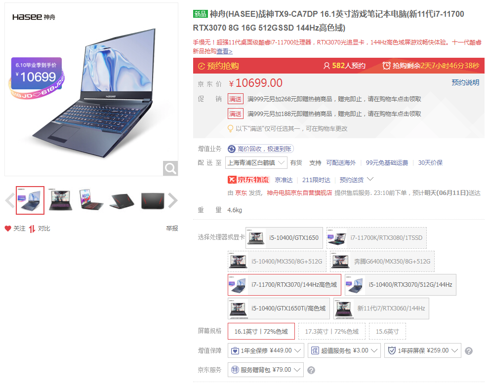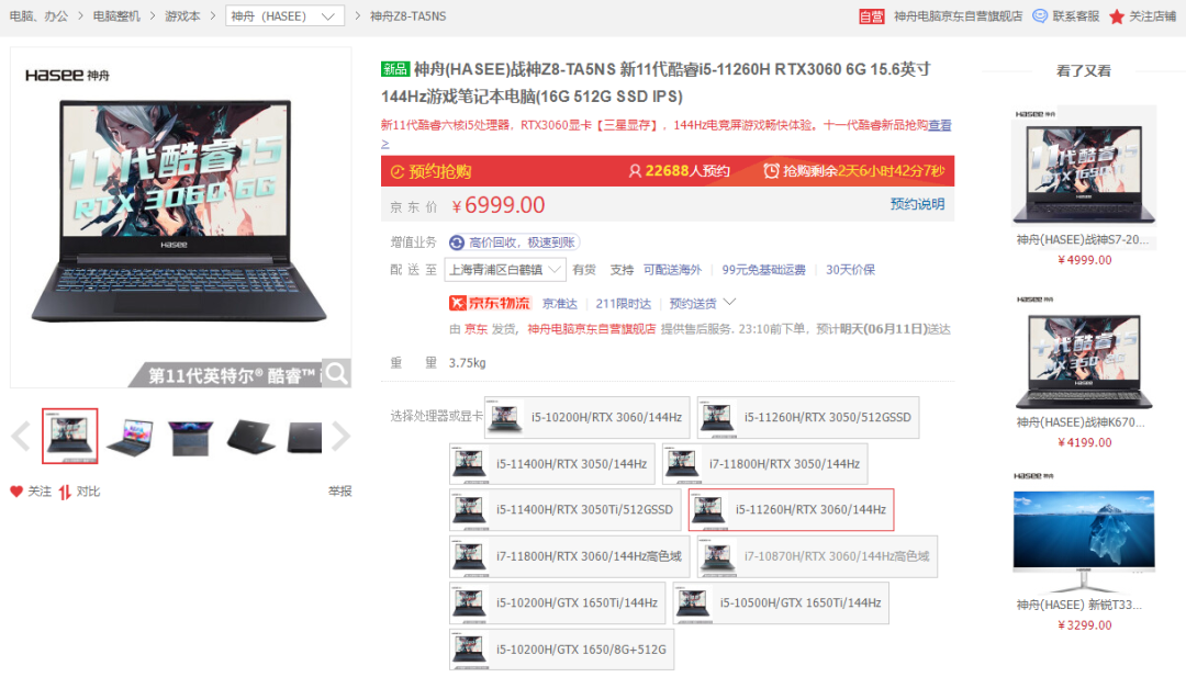 在京东的神舟电脑京东自营旗舰店里,有多款游戏本集体促销,我整理了一张列表供大家参考:
