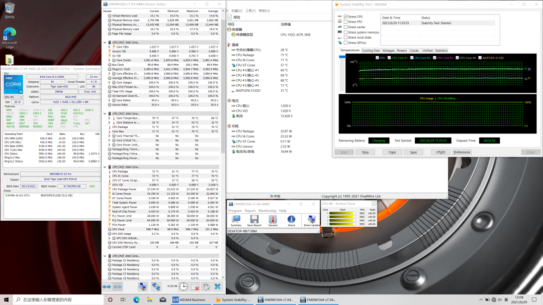 在满载状态下,CPU温度最高77℃,稳定在72℃,功耗27W左右,频率维持在4.0GHz,已经跑满了i5-11300H的全核最大睿频。