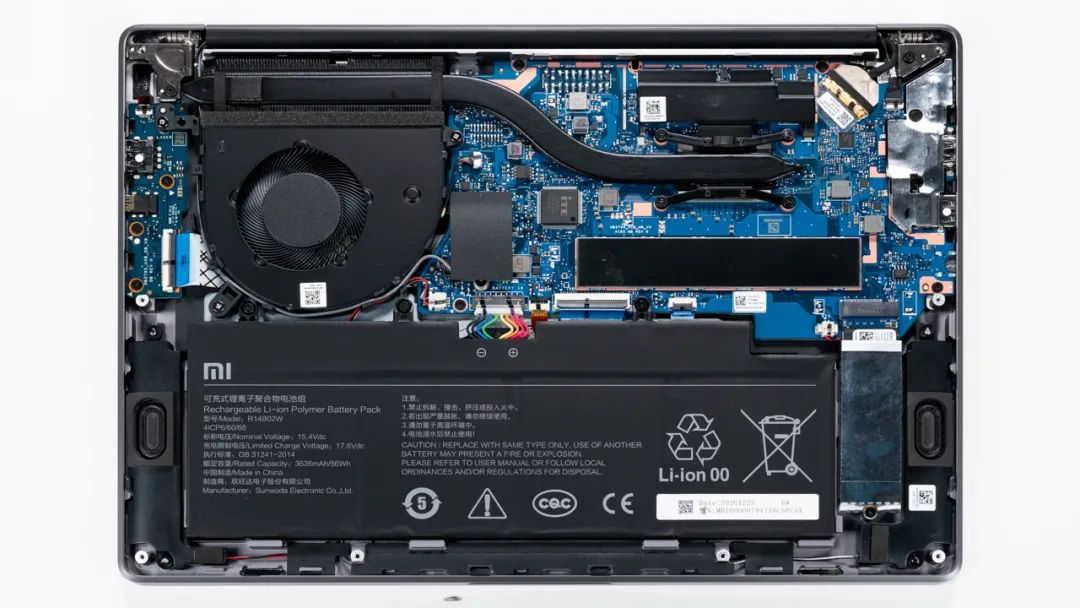 上图是红米 RedmiBook Pro14锐龙版的拆机实拍图,单风扇单热管组合。