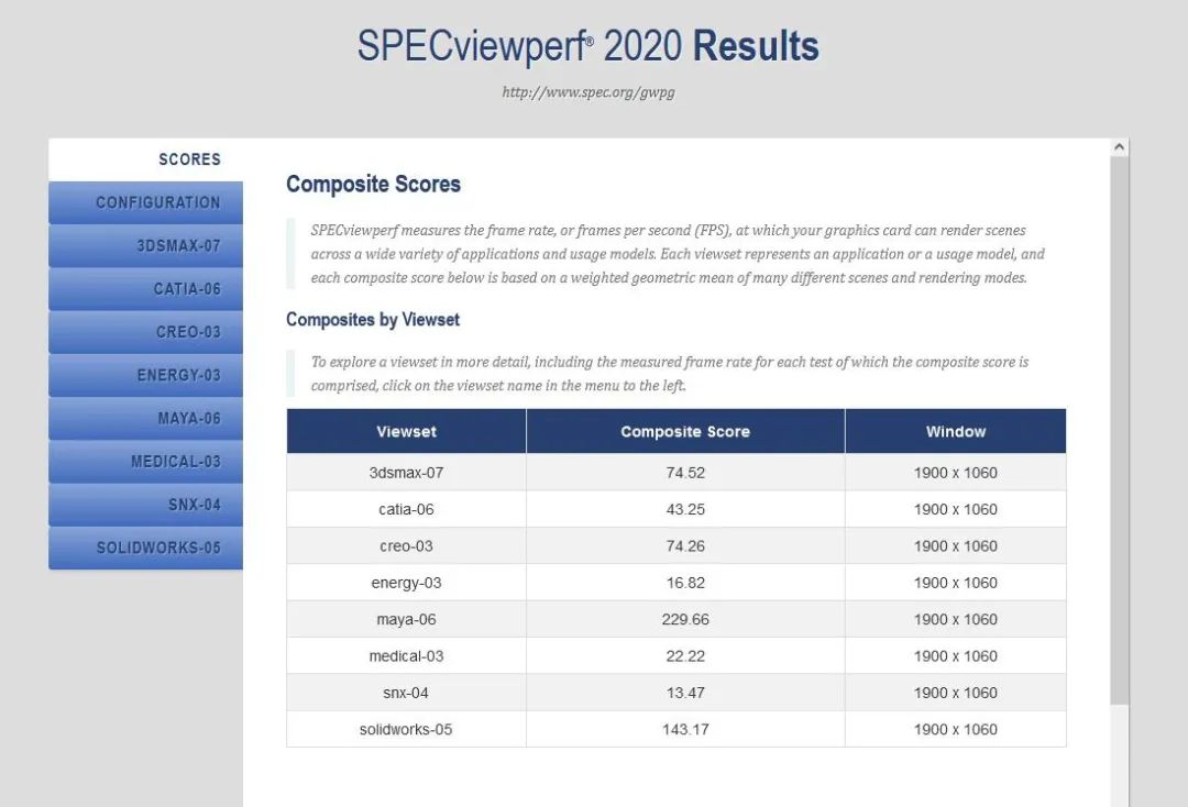 此外,我们还顺便运行了SPECview工业测试软件,成绩供大家参考。