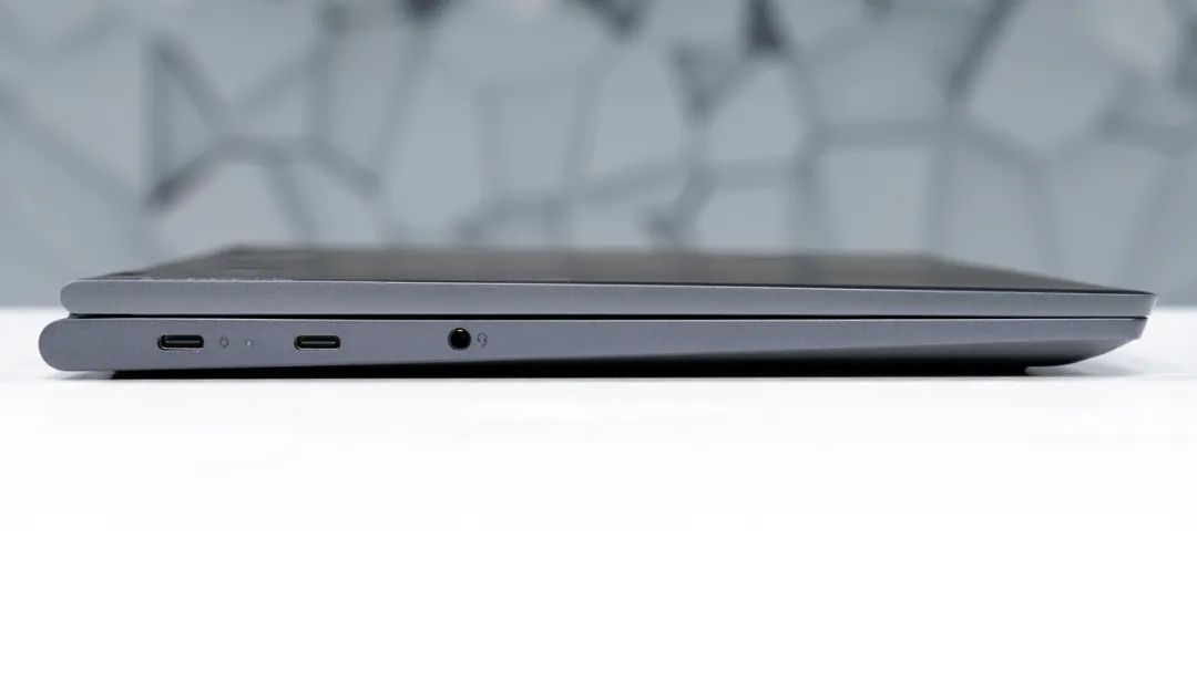 接口方面, 它的右侧有USB-A 3.2 Gen1,左侧两个全功能Type-C,以及一个3.5mm耳机接口。