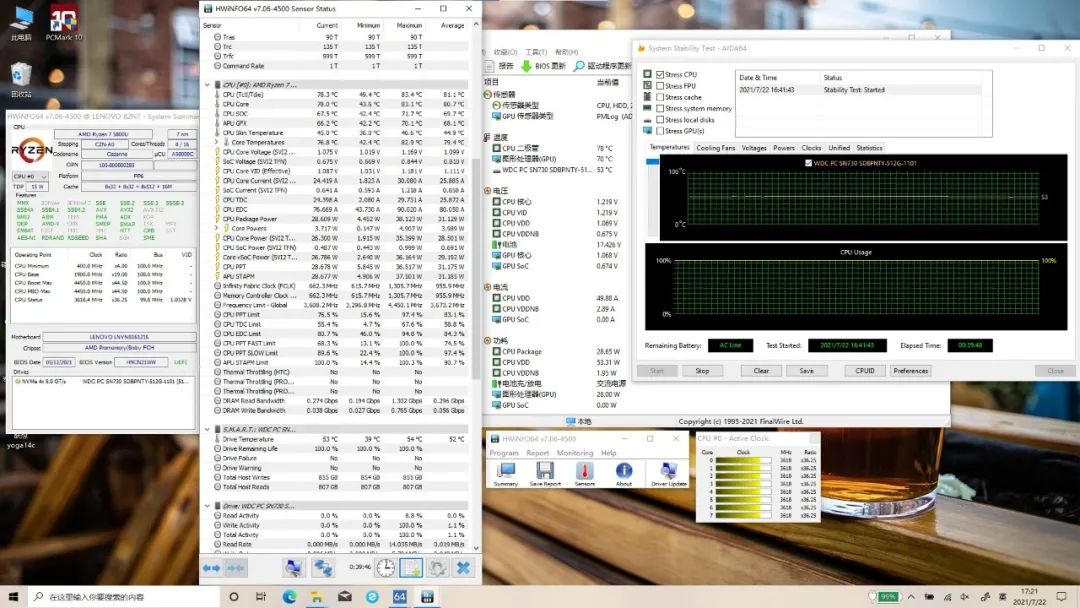 在满载状态下,CPU核心温度稳定在78℃,功耗28.6W,频率维持在3.6GHz。