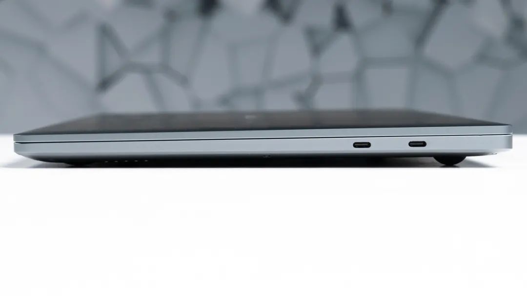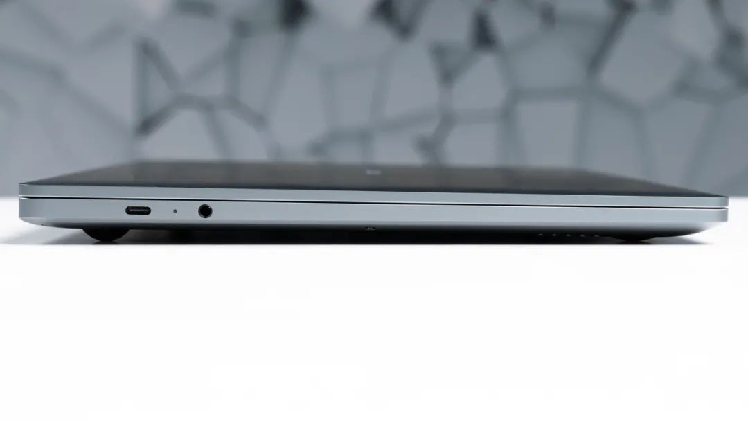 接口方面, 机身左侧有一个USB Type-C接口(支持100W PD充电)和一个3.5mm音频接口,右侧两个USB Type-C接口(支持DP1.4),对于一台15.6寸的笔记本来说数量和种类略少。
