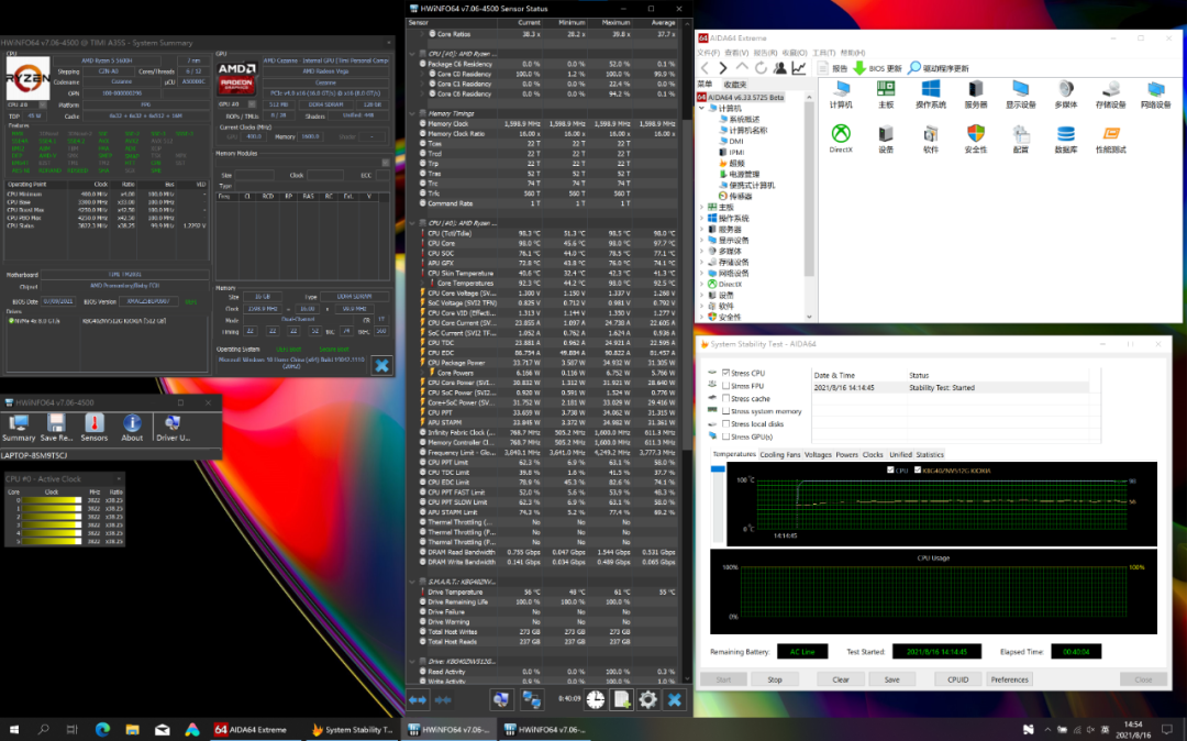 总的来说,小米笔记本Pro15 锐龙版的散热表现较差,R5 5600H的功耗没有达到45W标准线,但核心温度已经接近100℃了,同时键盘温度也很高,如果换用“HS”后缀的处理器,那成绩或许会相对好一些。