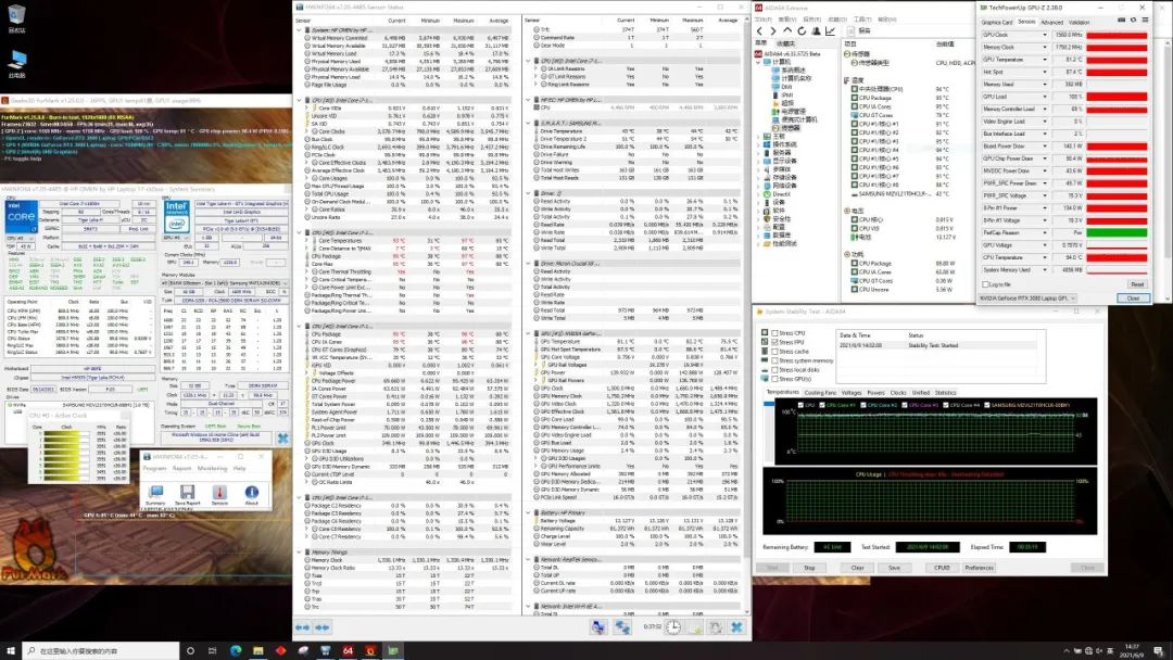 咨询HP官方后得知,我们手头的机器还是工程机,bios也非最终量产机器的版本,量产机器上RTX3080版本会更新BIOS,使其在双烤和游戏中会保证150w运行。