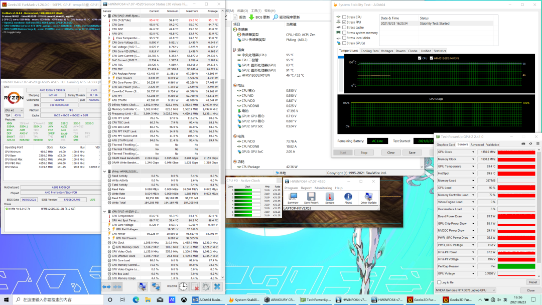 显卡功耗95W,温度83.6℃,频率1350MHz。