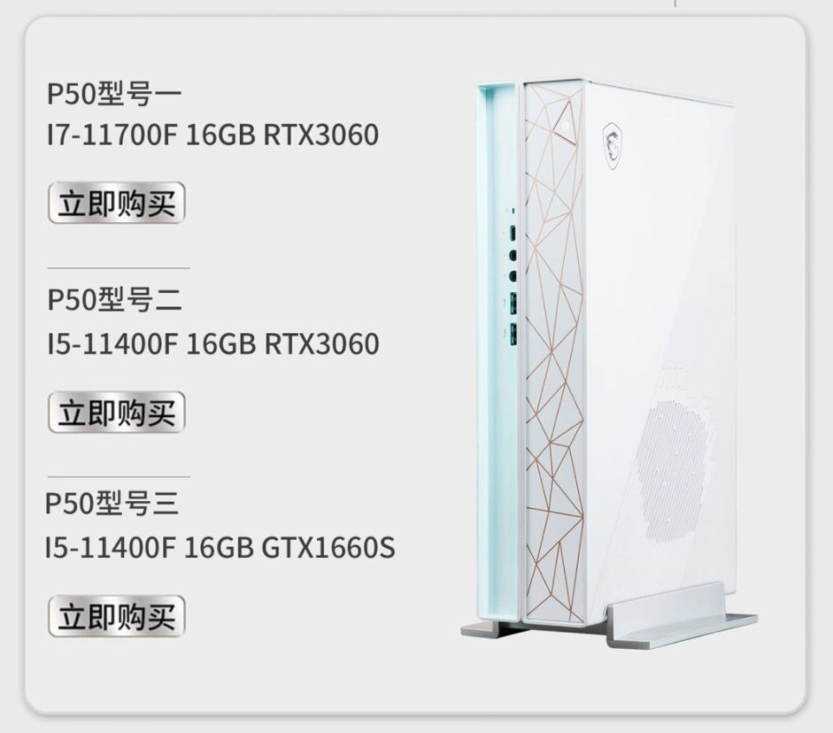此外,主机提供英伟达 GTX 1660S、RTX 3060 显卡可选。