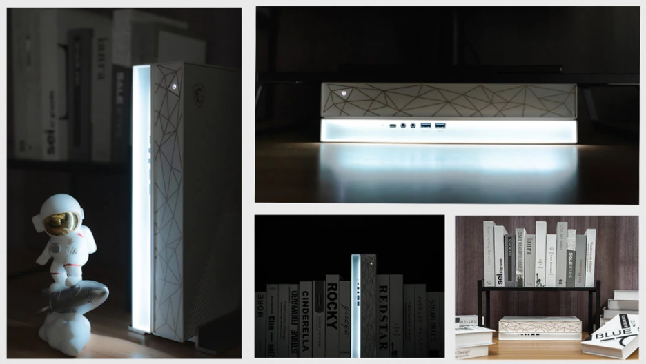微星于 9 月 22 日在国内发售了 Creator P50 创作者迷你主机。这款主机采用了白色的机箱,容量仅为 4.72L。机箱正面具有不规则金色曲线,左侧拥有淡蓝色灯光点缀,侧板使用 拉丝金属设计,通风口使用了不规则的条纹形状,设计现代优雅。