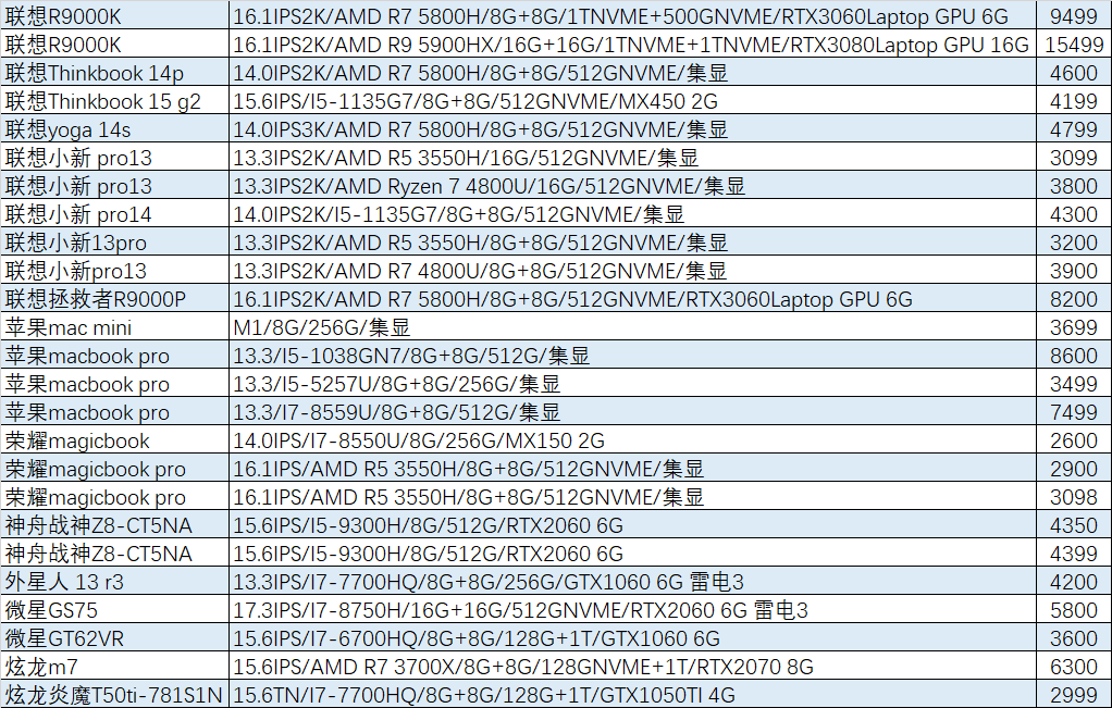 配置:16英寸3K 100%sRGB IPS/i7-11800H/32G/1TB NVME/RTX3060 6G