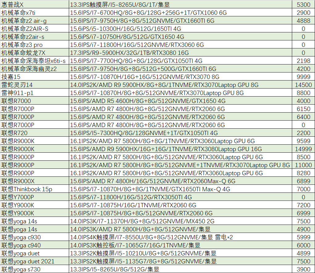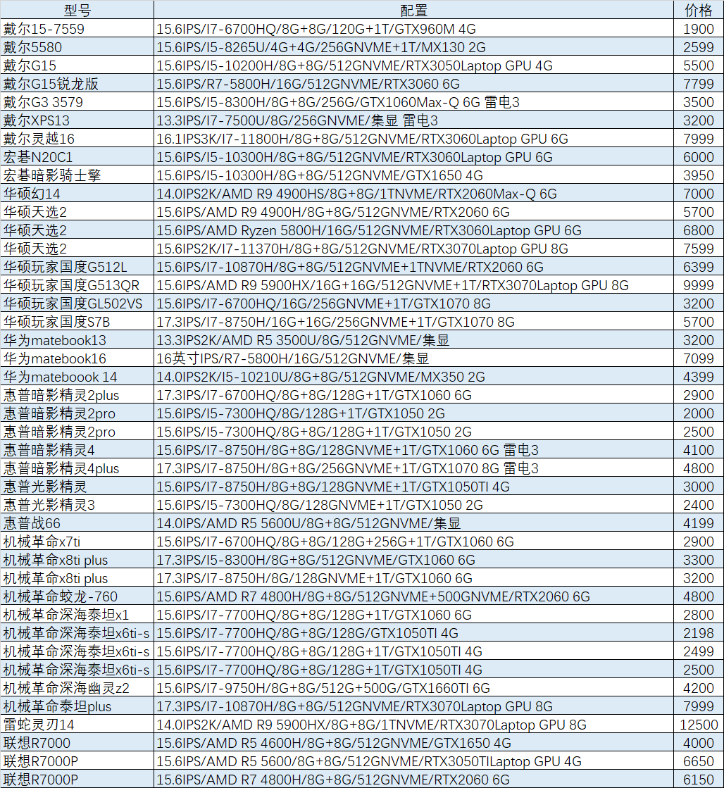 配置:16.1英寸2K 100%sRGB 165HZ IPS/R7-5800H/16G/512GNVME+1TBNVME/RTX3060 6G/背光键盘