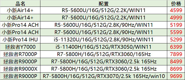 除了上面介绍的两款游戏本,还有以下几个型号,也会在今晚直播间上架,这个价格只要能抢到就是赚到。数量有限,抢完即止。