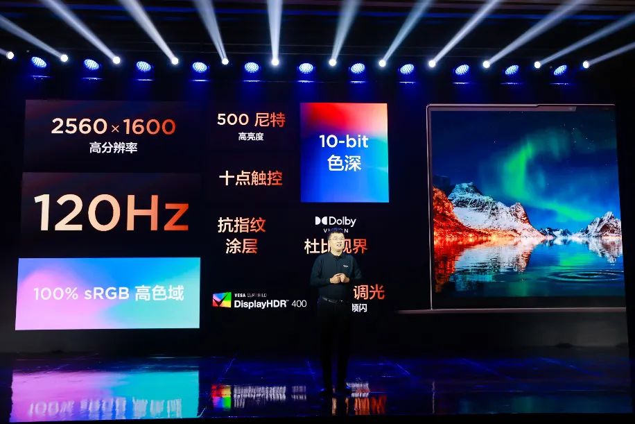 联想 YOGA 16s 大屏幕支持 2.5K 高分辨率、10-bit 色深,500 尼特亮度,120Hz刷新率、100%sRGB色域。