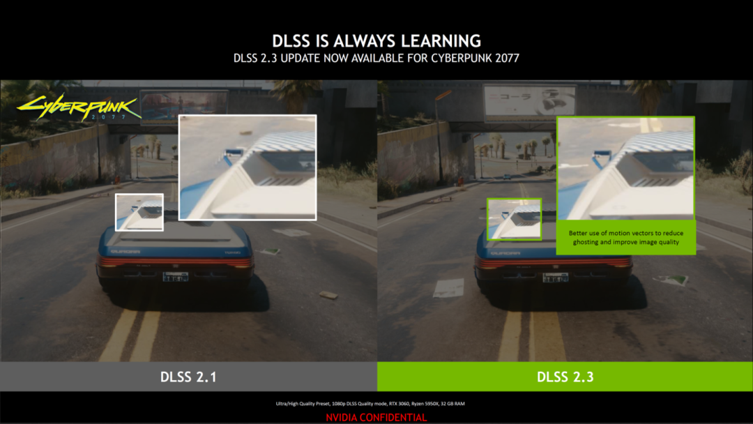 这些更新包括:全新的 DLSS 2.3 版本,该版本应用于超过 15 款游戏,包括《赛博朋克 2077》(Cyberpunk 2077)、《毁灭战士:永恒》(Doom Eternal)等游戏补丁,以及对 NVIDIA Image Scaling (以下简称 NIS)算法的升级,该算法适用于所有游戏。